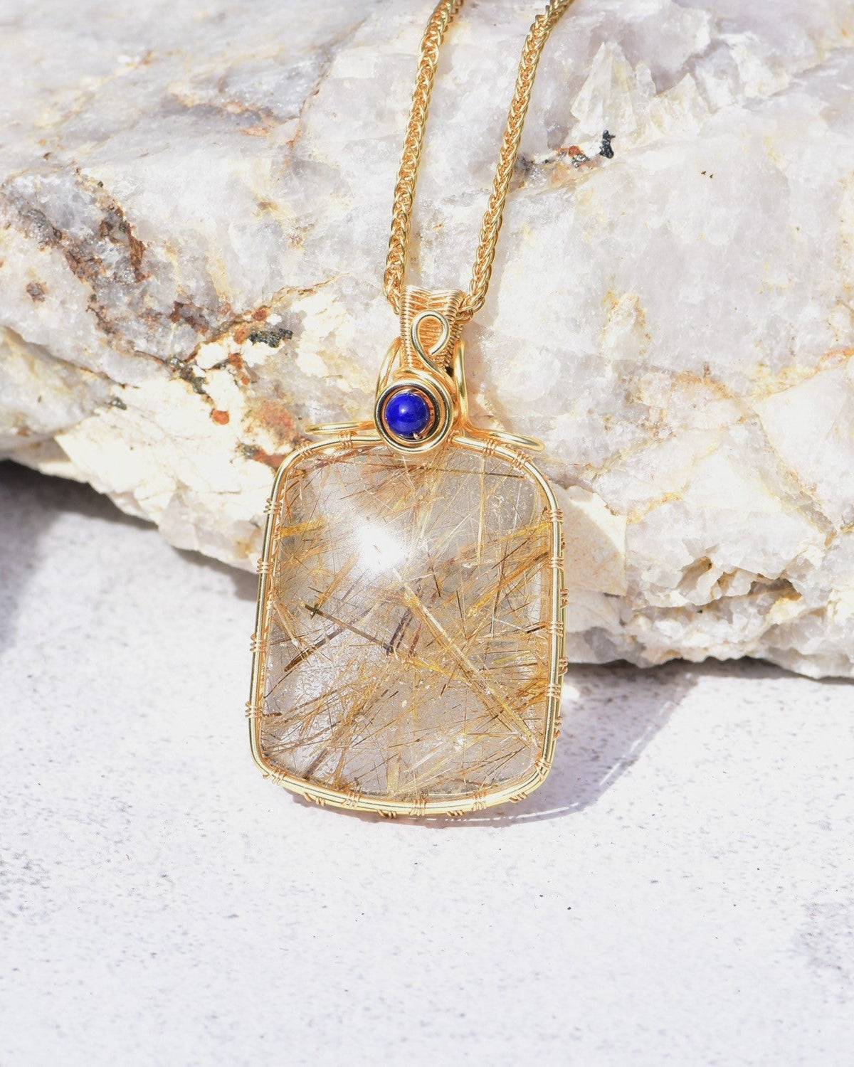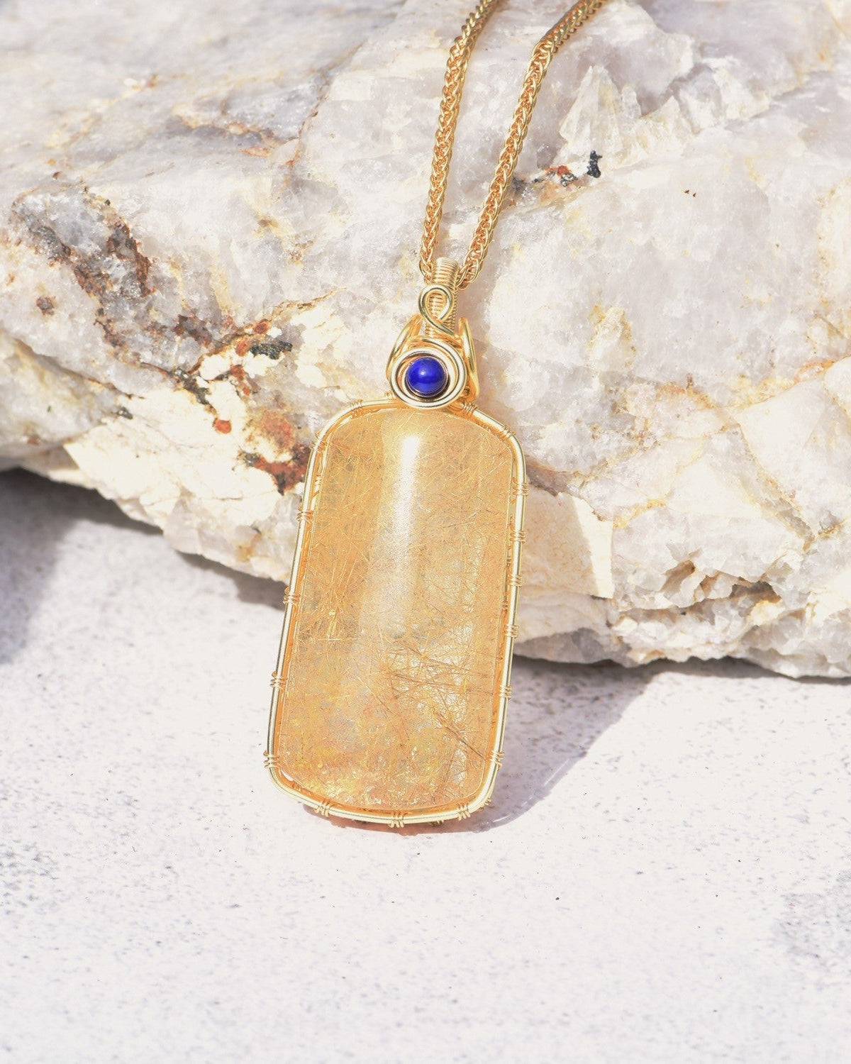 golden rutilated quartz slab pendant